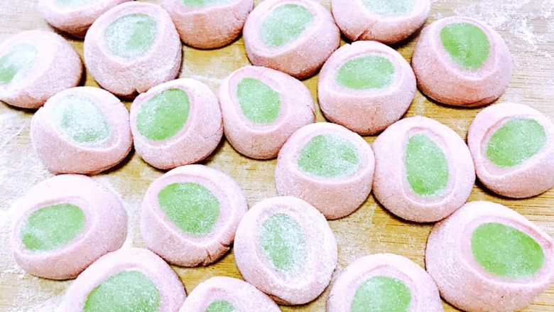 1. 取500克面粉、加入红曲粉和成面团醒发30分钟