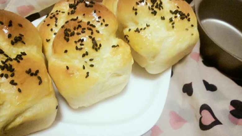 6. 发酵好,刷上蛋液撒上芝麻,烤箱预热120℃,25分钟。