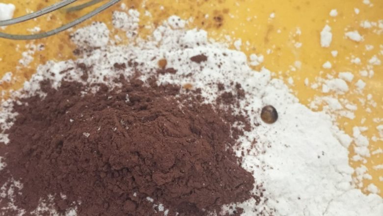 - 低筋面粉和【可可粉】 面粉45g【可可粉8~10g】