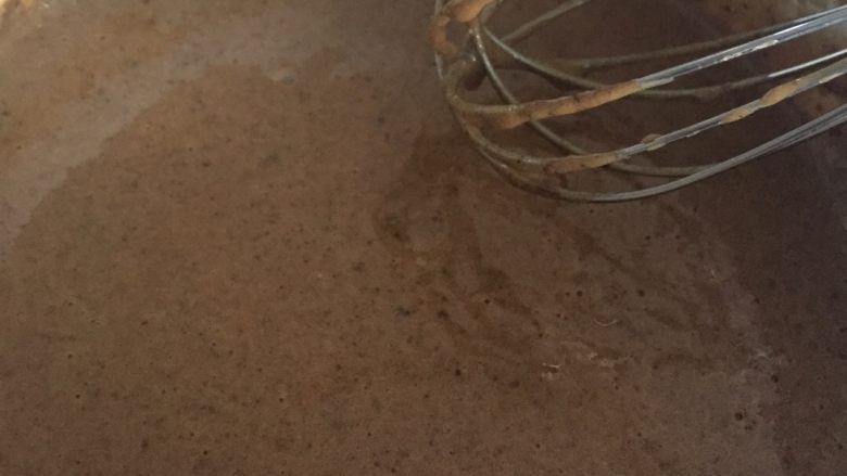 4. 接着加入筛过的面粉和可可粉继续搅拌