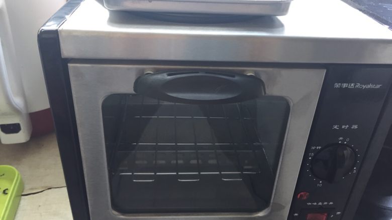 12. 放入烤箱。这时候要看烤箱类型。假如烤箱是比较简单的,没有上下层和设定温度的,建议烤5分钟即可,自己要注意观察。如果烤箱有上下层和设定温度的,调上下档温度都到140度,调50~60分钟。