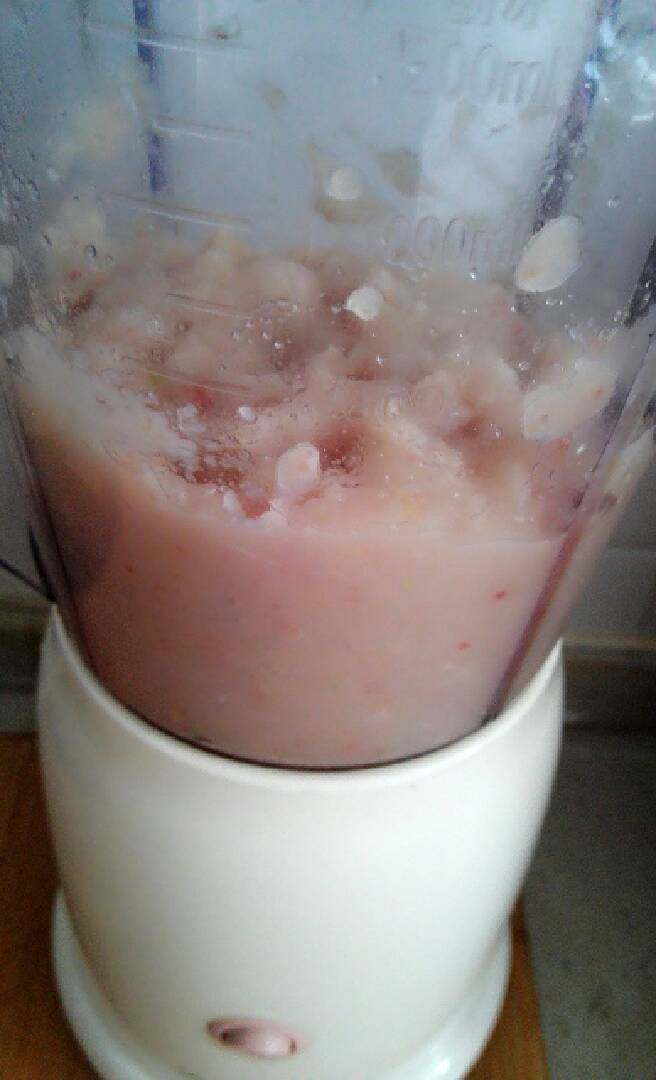 2. 把去掉鱼刺的鱼和葱姜末,放搅拌机里加点水打碎。