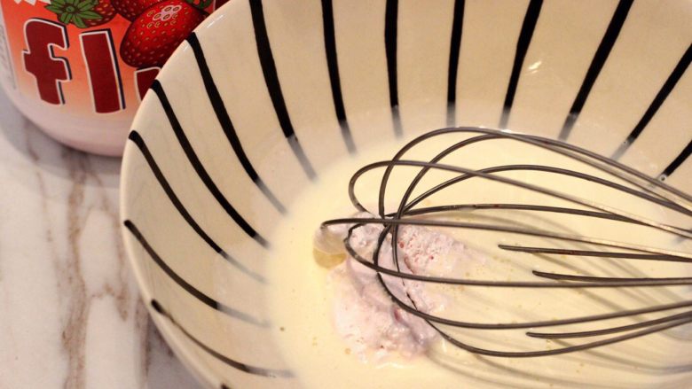 12. 取一半淡奶油加入Fluff草莓味棉花糖