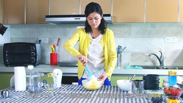1. 打发蛋白,低速再转高速打,细砂糖一点点加入