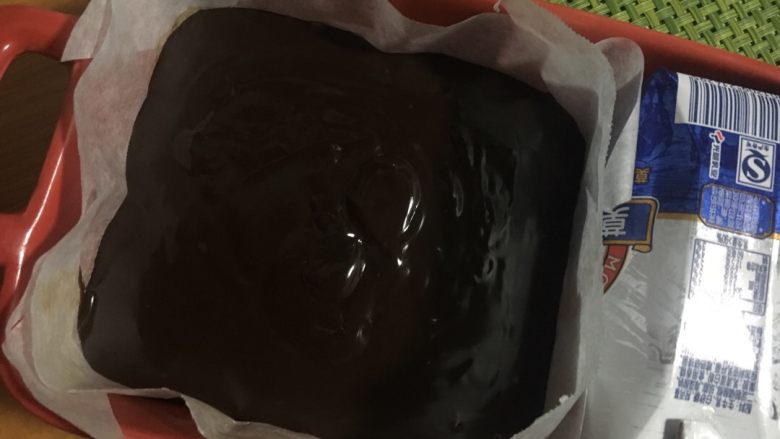 14. 四周的油纸用夹子固定,让巧克力平整流淌 送去冰箱冷藏2.3小时