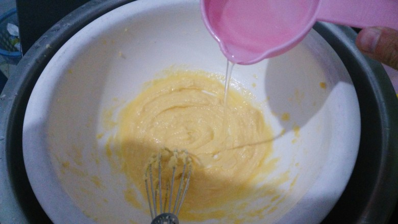 6. 加入水,稍稍搅拌即可,不用充分搅拌均匀
