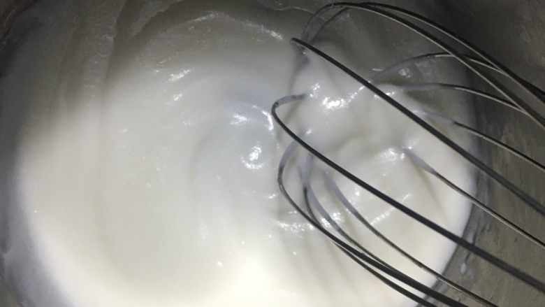 9. 继续打发至出现纹路时加最后的三分之一糖