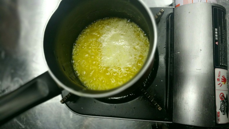 2. 焦化黄油,把黄油烧开,慢慢变成茶色,关火放凉