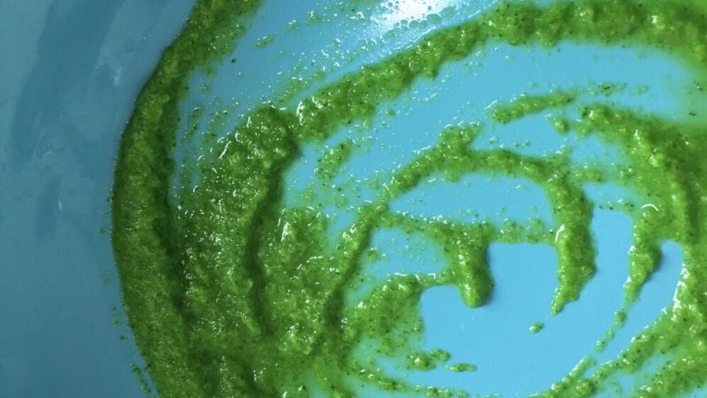 11. 取一个大盘子,用西兰花泥再盘上画圈圈