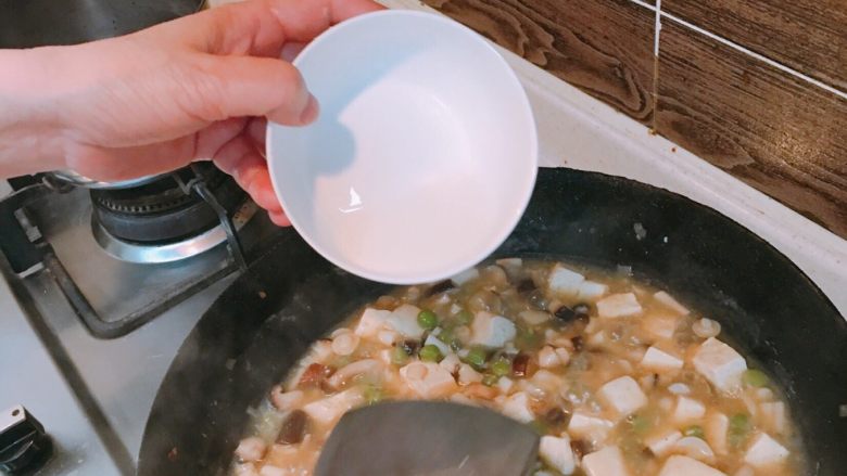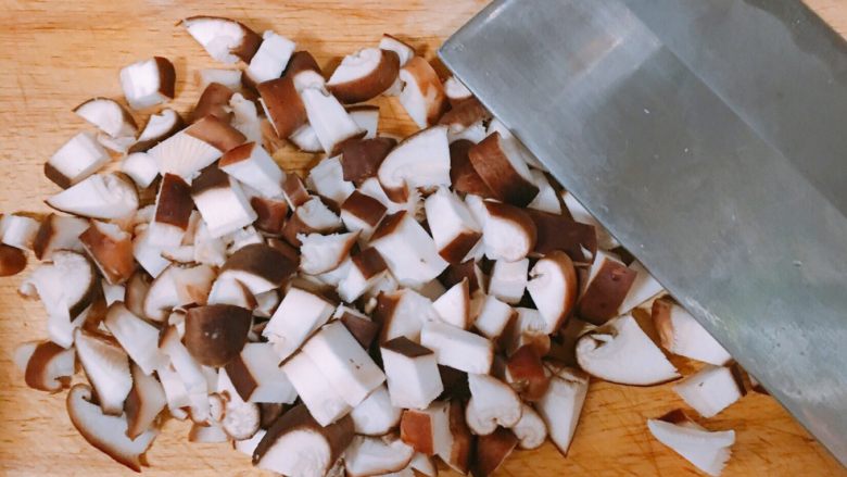 8. 放入香菇丁、蟹味菇丁、白玉菇丁 翻炒