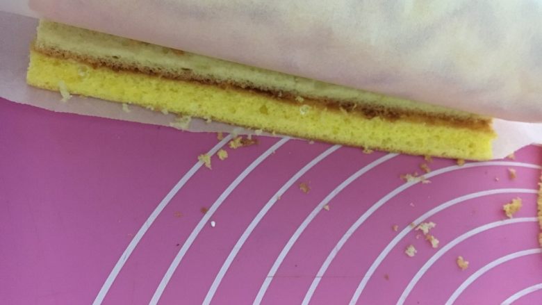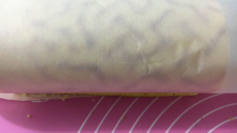30. 再把蛋糕翻个面,虎皮在下放在干净的油纸上