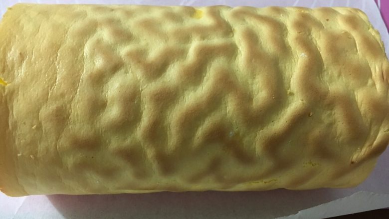 45. 切去两头不规则的部分,行了,虎皮蛋糕卷顺利完成