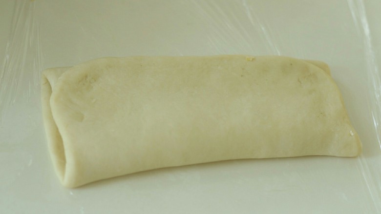 6. 铺在保鲜膜上。20*15厘米的大小。放入冷藏。