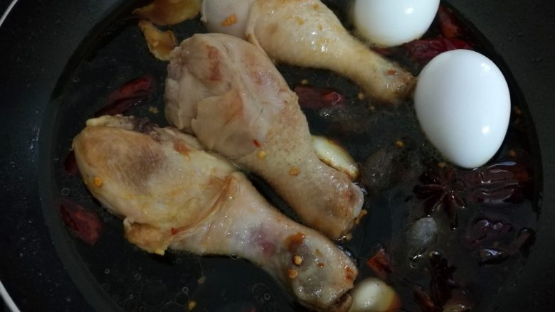9. 再放入鸡蛋和八角。