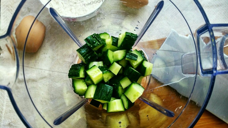 2. 将黄瓜切成小块,放入搅拌机中。