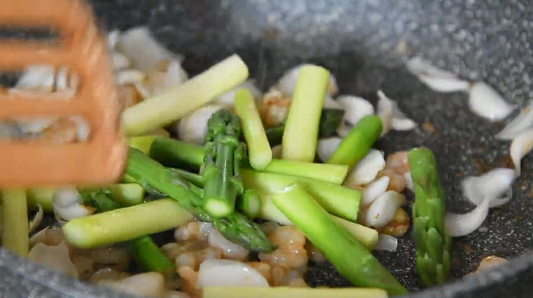 锁住这道春风里弥漫的鲜气——芦笋百合炒虾