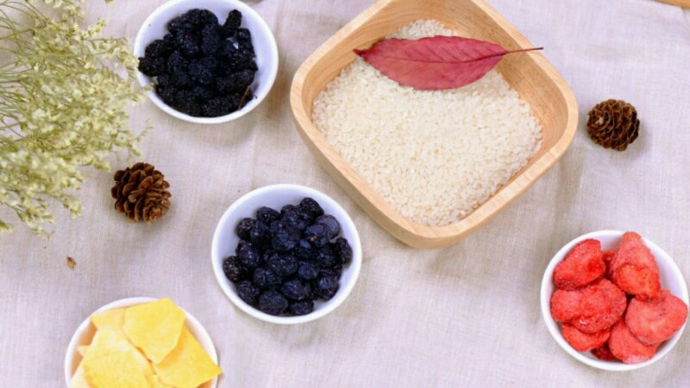 1. 准备原材料,糯米淘好,桑葚洗净备用;