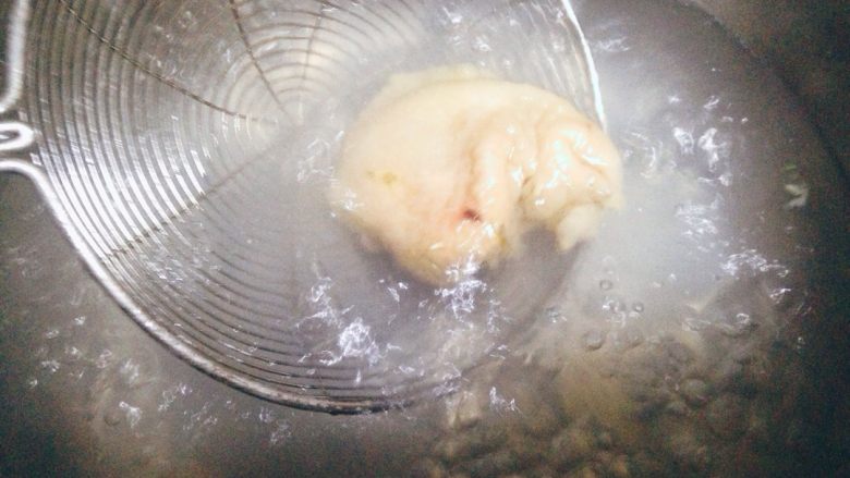 8. 鸡皮捞出后放入凉白开水中冷却。