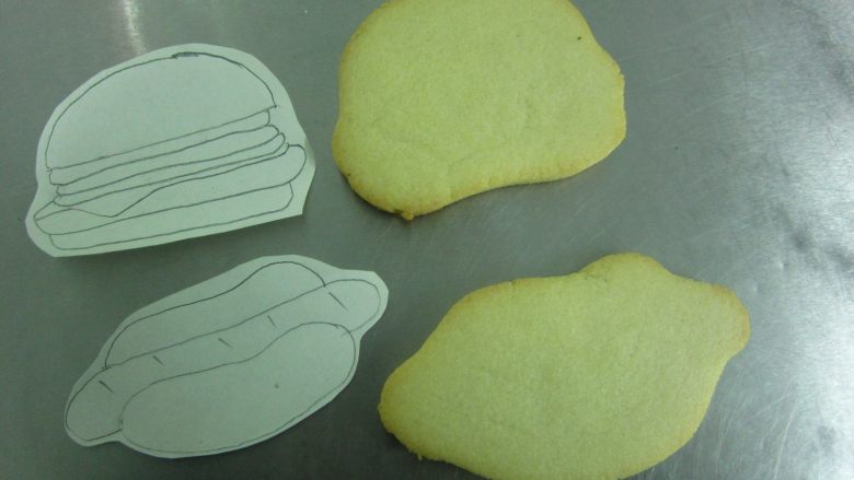 18. 用红色糖霜画出番茄酱,放一边晾干