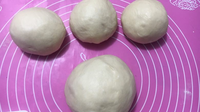 15. 分割面团,三个小面团每个170克,这些做吐司,剩下一个做卷。我比较贪心,做了比较大份的,所以可以做成卷和吐司