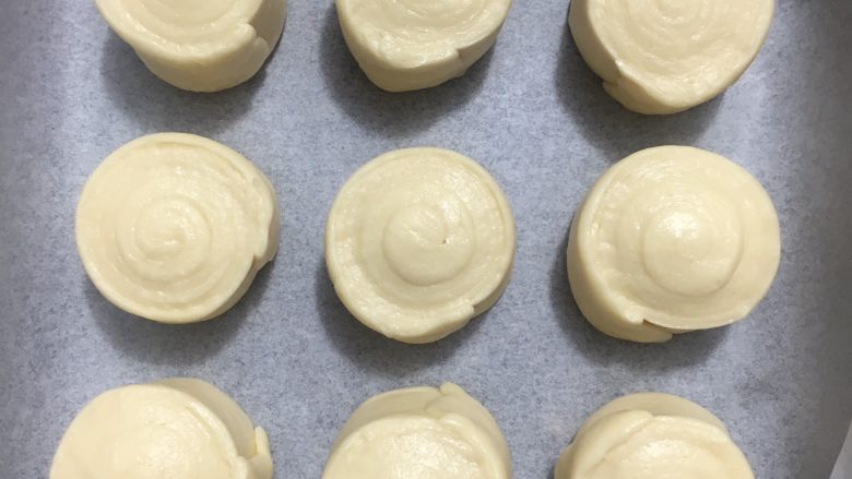 23. 把九个卷整齐有序地码在烤盘里,面团好软的说,有些都看不出有卷的模样了