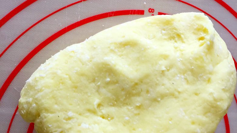 5. 澄面+生粉+砂糖调匀用煮开的栀子花的水把面烫熟揉匀