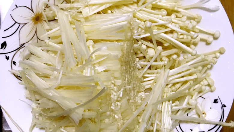 5. 金针菇去掉头上比较老的一段,可对半切,也可用整根,看自己的选择