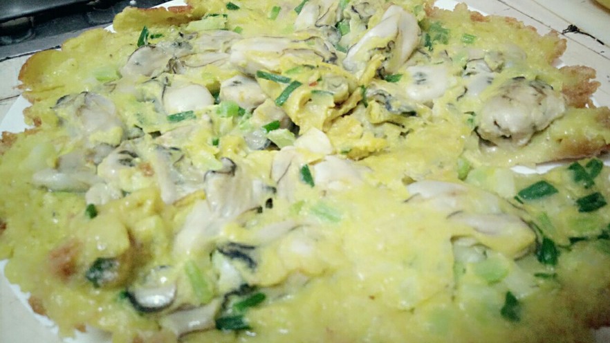 - 也可以另一种煎法,不滤水,牡蛎过油,再淋上鸡蛋液煎成金黄牡蛎饼
