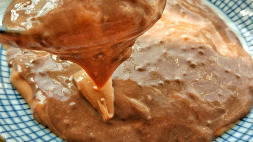 7. 搅匀后回温,用小火煮不停的搅动避免糊底,煮至浓稠有点Q的状态即可离火,用余温加入20克黑巧克力搅匀即可。凉透密封三天内食用完。
