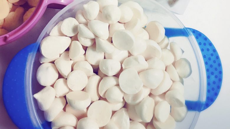 7. 用拉花挤在烤盘里,挤的同时,烤箱150度预热5分钟。挤好后,上下150度五分钟定型,之后下火90度,上100度40分钟左右时间。时间好了,尝一下,要是还软软的,就在烤会儿,一定要低火慢慢烤!