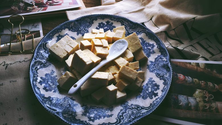 豆腐性凉,具有益气和中、生津润燥、清热解毒的功效,含有铁、钙、磷、镁等人体必需的多种微量元素,还含有糖类、植物油和丰富的优质蛋白,素有“植物肉”之美称。 豆腐的消化吸收率达95%以上 两小块豆腐,即可满足一个人一天钙的需要量 这道拌豆腐简单平淡却有种细水长流的感觉,久吃不腻,我几乎连着吃了半个多月..应该是缺蛋白质了