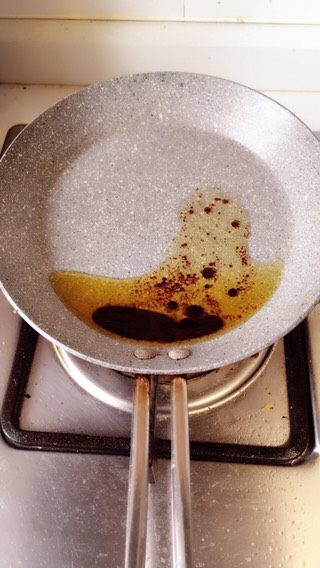 14. 平底锅内倒入之前的葱油和葱油酱汁,烧热。