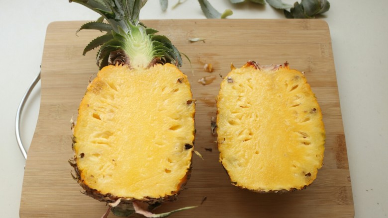 1. 一个中等大小的菠萝,从三分之一处纵剖开。