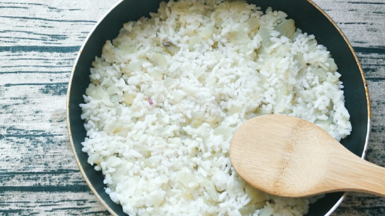 米饭剩的多,还有个土豆,嘿嘿,还有点马苏里拉(ง •̀_•́)ง所以就做啦,拒绝浪费食物哈。