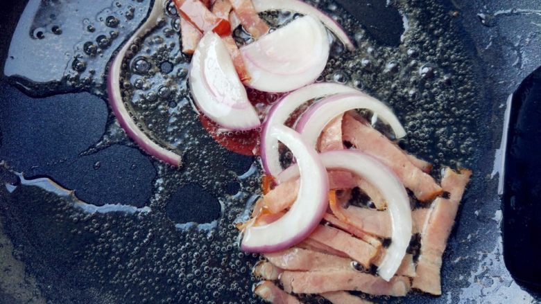 简单好吃的家常菜,培根煸出油,会使不容易入味的花菜有咸香味儿,洋葱炒软后口感甜软,搭配起来很好吃