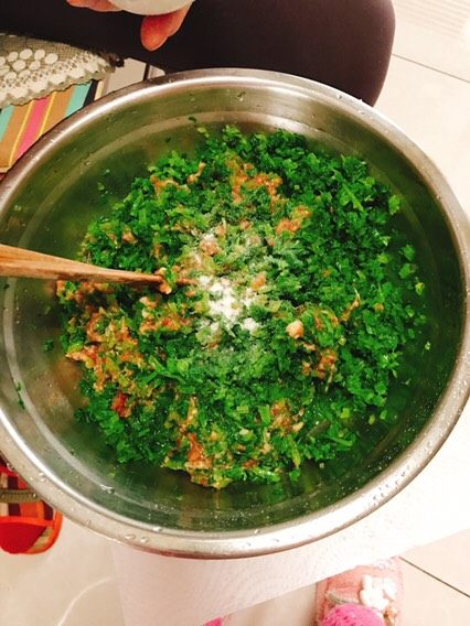- 3. 饺子馅中的芹菜空出来的水不要倒掉,可以在搅拌馅儿比较干的时候加进去