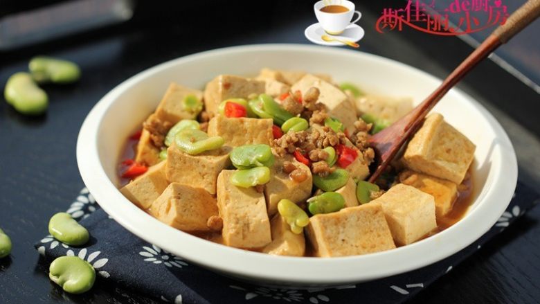 - 1. 豆腐不易碎的小窍门就是放入盐水锅中焯一下, 或者放入加了盐的开水中浸泡5分钟; 2. 蚕豆米要提前焯煮下预处理熟,避免吃了生蚕豆米中毒; 3. 最后用淀粉和盐、胡椒粉,加入适量的水拌均匀后倒入锅中, 大火收汁即可。