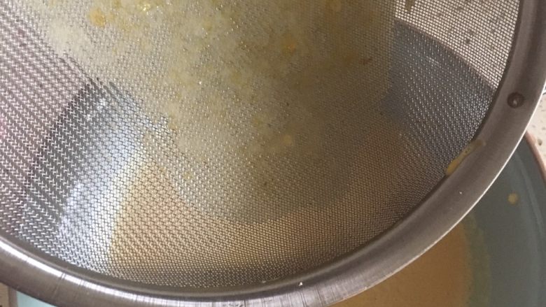 3. 将牛奶有盐黄油融化的液体倒入蛋糊中,搅拌均。
