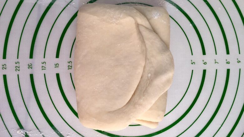 18. 取刚才步骤4的另外一半块面团,重复刚才步骤5到步骤17,进行三折三擀一卷
