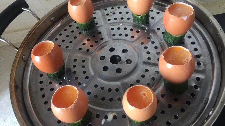 4. 加蛋液 八九分满 上锅蒸20分钟 别盖盖 鸡蛋容易喷