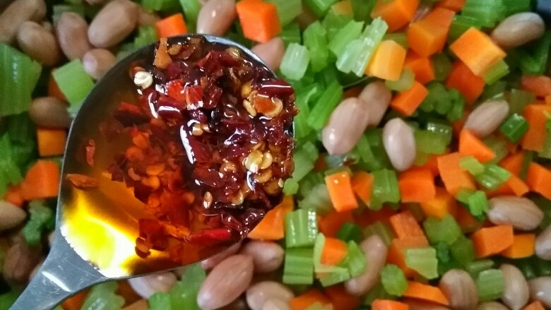 1. 芹菜洗净,焯水,过凉,控水,切丁。