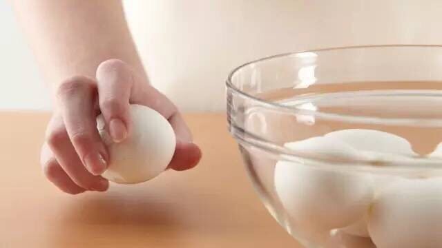 8. 轻轻地把鸡蛋敲出裂缝,放入冰水,浸泡至少1分钟。