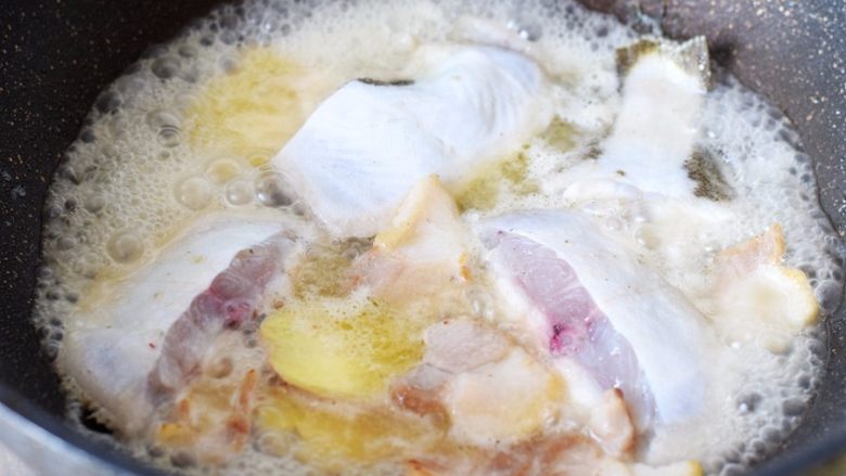 2. 将鱼斜切成大块;