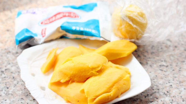 2. 取出冷冻好的芒果。