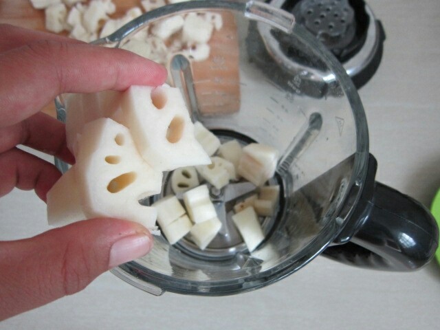7. 打好的藕汁倒入锅中。