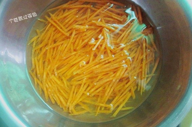 1. 选择新鲜爽脆的黄瓜一根,洗干净后切成丝待用