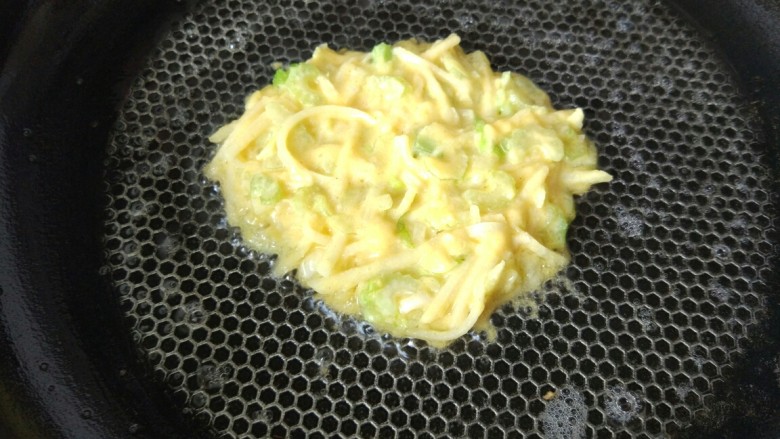 用芹菜和土豆做的一款杂粮饼,里面加了一点点的玉米粉,因为有玉米面粉外表有点脆,里面的有土豆会是软软的,不知道有多少人能接受这个口味?反正粗粮的都不会太好吃。个人也是为了孩子,就经常琢磨一些健康的食物,怕孩子挑食嘛,所以就各种研究喽……