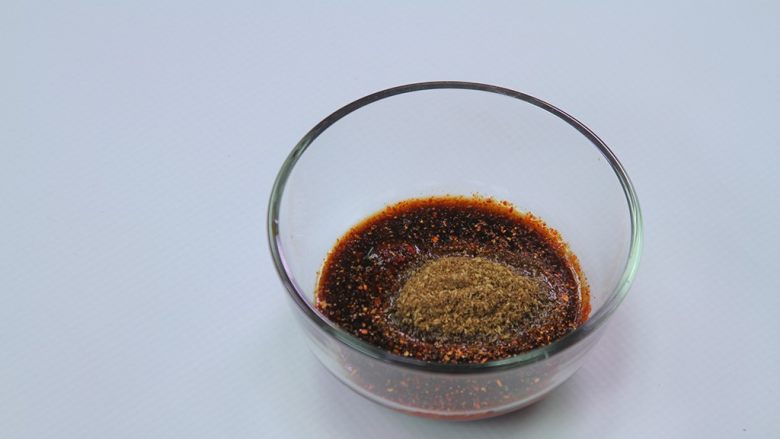 4. 再放入比辣椒多1.5倍的麻椒粉,少量的糖还有耗油和小米辣。