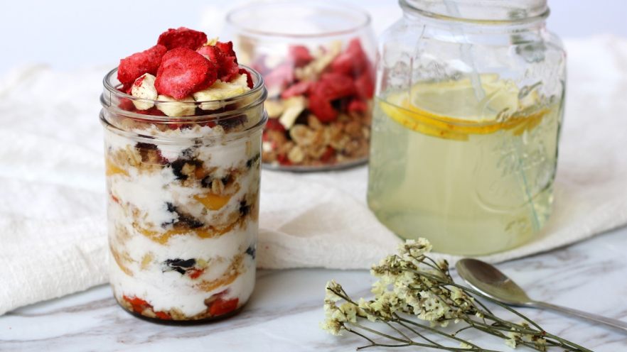 - 2.酸奶杯根据自己口味添加合适的酸奶和水果