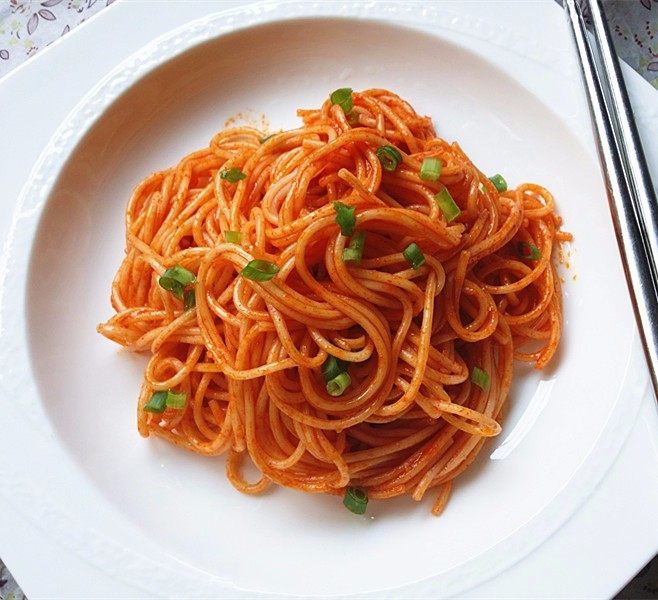 随着天气越来越热,热汤面有点失宠,而各种口味凉面则开始盛行。家人爱吃面条,热汤面、炒面和凉面都很喜欢;同时我和那位还很喜欢韩国风味美食:炒年糕、烤肉和泡菜想吃时,随手就会做些解馋。 作为美食达人,爱美食爱创新是我的目标;看就一盒刚打开的辣椒酱躺在冰箱如果变质多可惜了,正好天热没胃口想吃碗凉面;于是就想到韩国辣椒酱做酱拌凉面应该不错,心动赶紧行动吧----